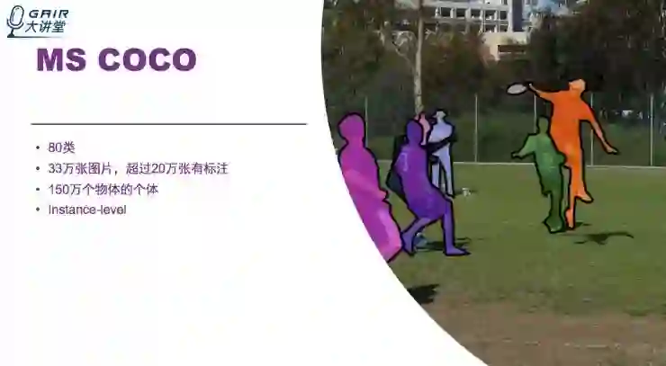这是目前为止有语义分割的最大数据集,提供的类别有 80 类,有超过 33 万张图片,其中 20 万张有标注,整个数据集中个体的数目超过 150 万个,最新的一些论文都会在 MSCOCO 数据集上做实验,因为它的难度最大,挑战新最高。