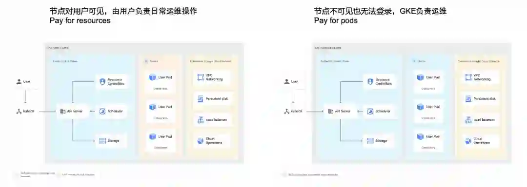 GKE Autopilot集群节点池/节点对用户不可见,也无法登录进行运维。
