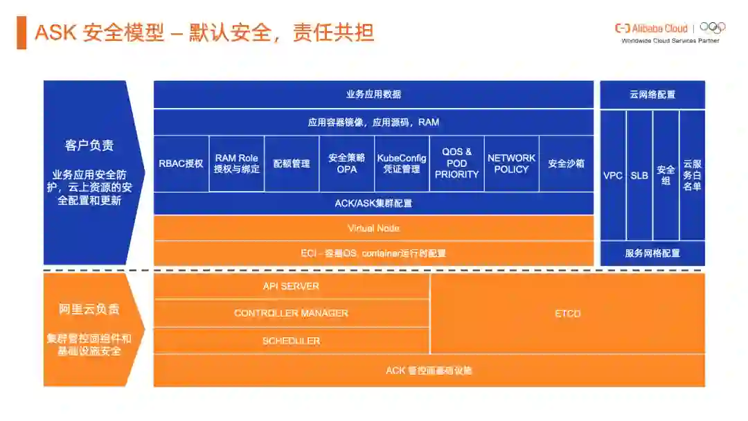 在安全和稳定性模型上,ACK on ECI/ASK依然采用了责任共担模式,但是数据面责任边界上移。