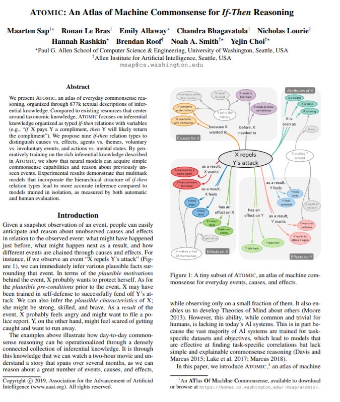 ATOMIC: An Atlas of Machine Commonsense for If-Then Reasoning