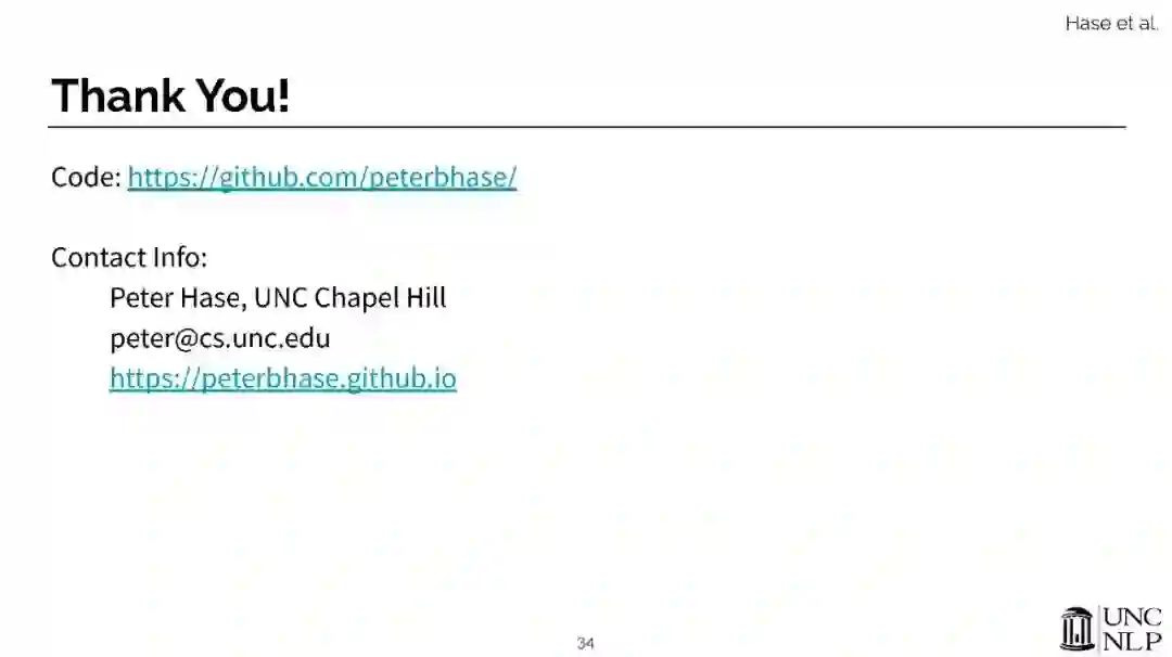 便捷下载,请关注专知公众号(点击上方蓝色专知关注) 后台回复“XAINLP” 就可以获取《【UNC-Peter Hase】自然语言处理中的可解释机器学习:方法与评估,34页ppt》专知下载链接