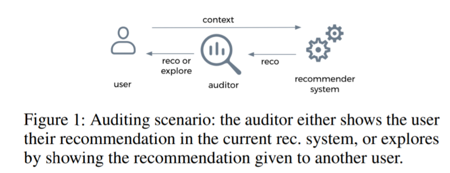 下图为审计场景:审计员要么在当前推荐中向用户展示他们的推荐系统,或通过向其他用户显示推荐来进行探索: