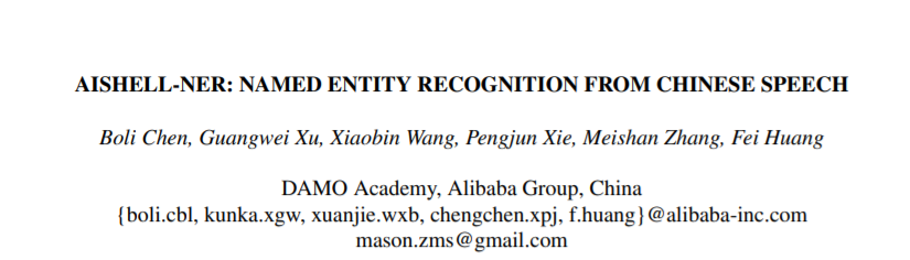 热议工作10:阿里巴巴达摩院为中文语音的 NER 引入了一个新的数据集 AISEHLL-NER