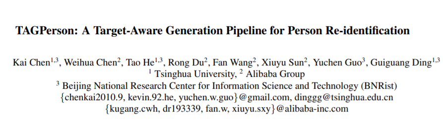 为了解决这个问题,清华大学和阿里达摩院联合提出了一种新的 Target-Aware Generation pipeline 来生成合成人物图像,称为 TAGPerson。实验表明,TAGPerson 可以实现比 MSMT17 上的广义合成图像更高的性能,即 47.5% 与 40.9% 的 rank-1 精度。