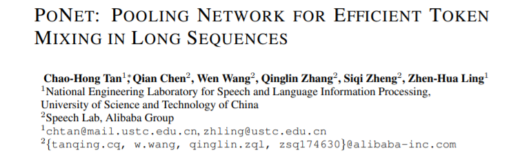 热议工作1:阿里达摩院语音实验室提出了一种具有线性复杂度 (O(N)) 的计算模型 PoNet