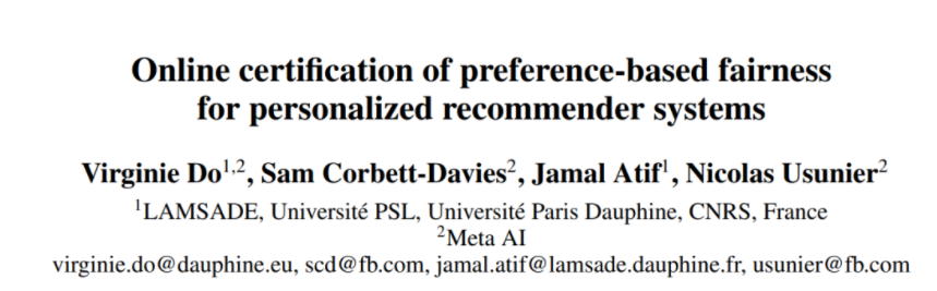 最佳论文1:巴黎第九大学、法国国家科学研究中心、Meta AI 等提出了一种样本高效算法理论上保证推荐系统不会降低用户体验(Outstanding Paper Award)