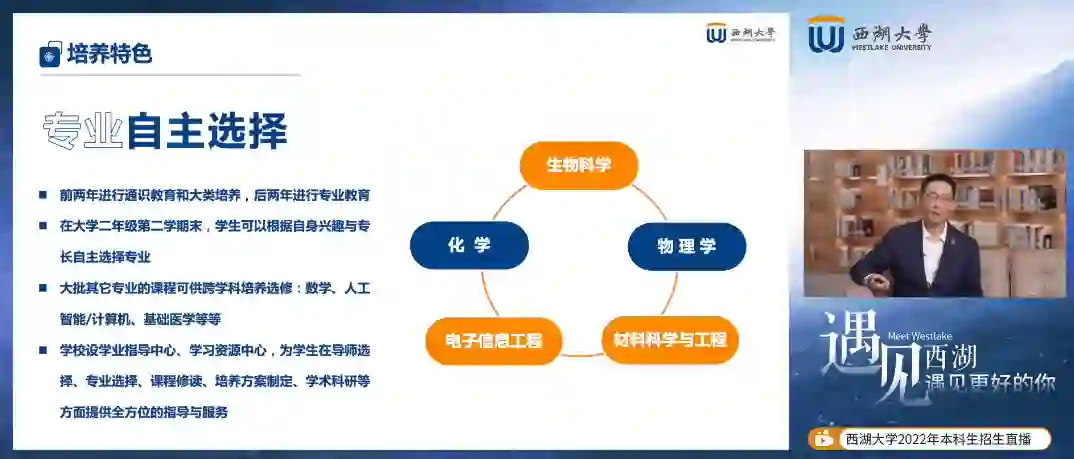 3月19日晚7点,中国科学院院士、西湖大学校长施一公准时出现在直播间,在线宣讲西湖大学首次本科创新班招生的相关事宜。