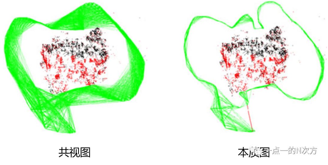 那么本质图就是浓缩版的共视图,因为它是在共视图的基础上,只保留权重比较大(>100)的边,所以本质图意味着其中的关键帧共视程度较高。