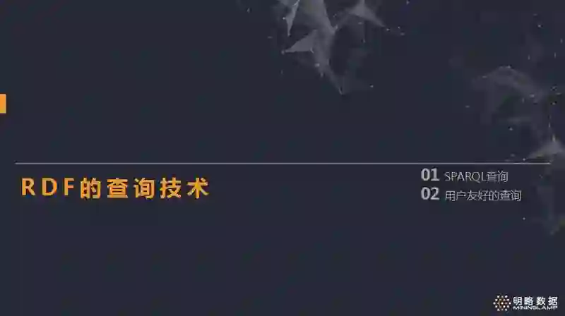目前,我们简单地介绍了 RDF 的基本概念、表示方法以及构建思路。接下来将介绍如何对构建好的 RDF 进行查询。本部分主要介绍 SPARQL 语言以及一些用户友好的查询思路,比如使用自然语言查询。