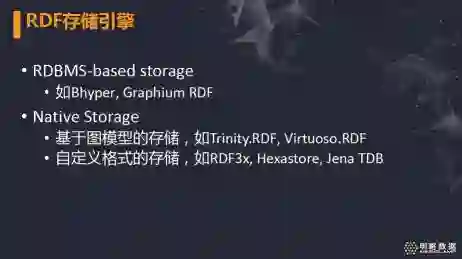 RDF 的存储方案主要有两大类:其一是基于 RDBMS 的存储方案,典型的系统有 Bhyper,Graphium RDF;另一个则是原生 (native) 的存储方案,根据 RDF 的数据访问特点而专门设计的存储方法。