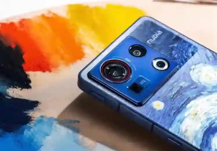 新机较努比亚 Z40S Pro 最大的变化就是后壳,以梵高《星月夜》为灵感,升级星光 AG 玻璃,采用梵高纹理光刻技术,配合星钻浮雕工艺、油画的笔触,带来了裸眼 3D 浮雕效果。