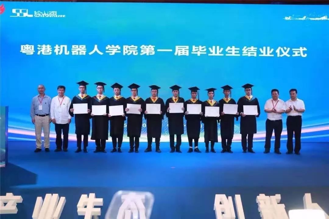 在29日论坛举行期间,首批粤港机器人学院毕业生代表上台合影