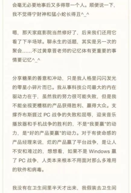 此外,罗永浩还称,从事科技公司最大的内在驱动力在于,虽然我的努力很可能失败,但是我不能坐视更糟糕的产品获得胜利、赢得大众。支撑乔布斯捱过PC战争的失败和屈辱,迎来音乐播放器和手机战争的胜利的,不是“我要赢”的动力,是"好的产品要赢”的动力。