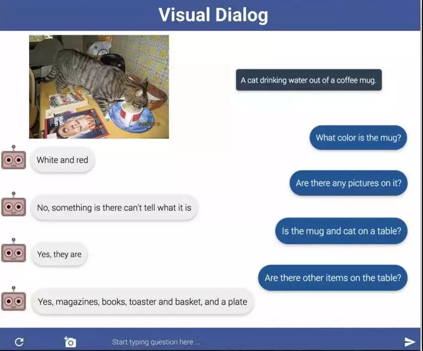 Devi and Abhishek:在这些对话中,问题的提出存在一些规律:对话总是开始于谈论最醒目的对象及其属性(如人,动物,大型物体等),结束在关于环境的问题上(比如,「图像中还有什么?」,「天气怎么样?」等)。如果我们可以使模型学习以区分相似图像为目的来提出问题并提供答案,从而使提问者可以猜出图像,就可以生成更好的视觉对话模型。Das & Kottur et al., ICCV 2017 展示了一些相关的工作。
