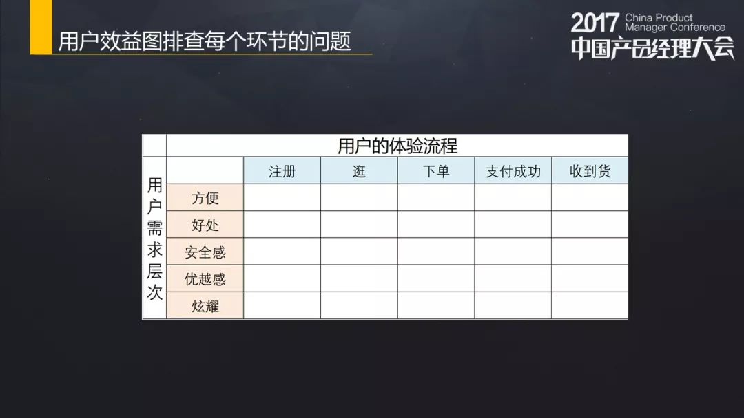 我给大家分享一个我们公司内部经常用的头脑风暴工具:用户效益图。它可以协助我们排查产品中的各种小问题。