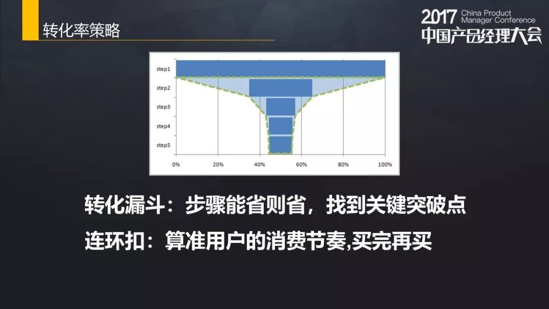 首先,步骤能省则省,然后找到关键突破点,如流失率特别大的步骤。当你有一个环节的流失率与同行、兄弟公司或者其他行业相比差别很大,你应该精力重点放在那个环节上,确保转化是持续的。