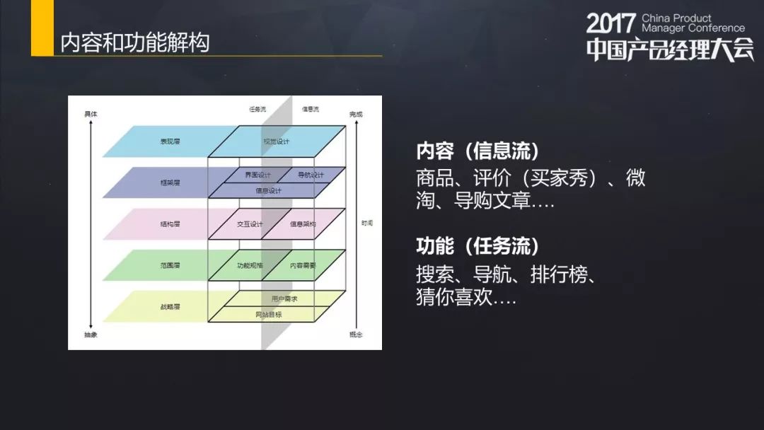 《用户体验要素》一书中,把产品分了五个层级和两条线,这两条线一个叫信息流,一个叫任务流。你要明白你的产品里信息或内容是否丰富,是否需要创造一些新内容?