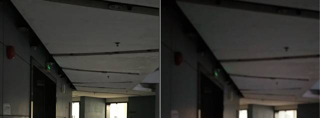 找一个光线较弱的环境,如通道、楼梯、桌子底下都可以。拍一张,仔细观察纯色区域的表现,噪点如何就一目了然了。