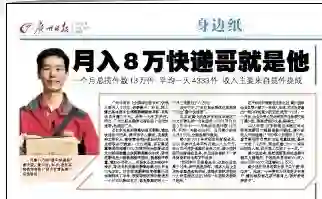 据广州日报报道,这位月薪8万的小哥拿到了一家电商商家的全部发件业务。在今年 2 月 21 日到 3 月 20 日期间揽收了13万单,仅绩效奖励就达到了79787.34元。