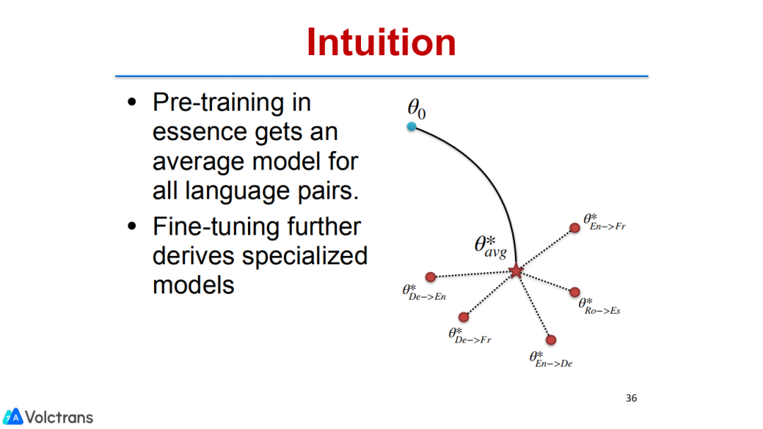 这里一件比较有启发的事情是:我们有可能只训练一个机器翻译的pretrain model,就可以针对任何语言对做fine-tuning并获得提升。