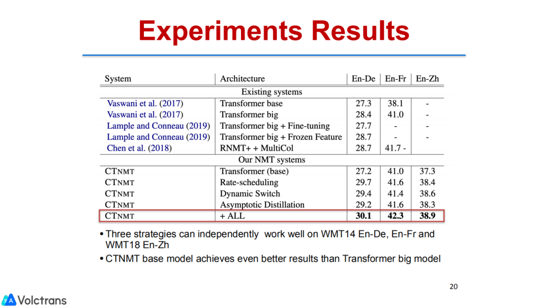 这三种策略的每一种都可以独立工作,把它们joint在一起,也能work。另外我们也尝试了pre trained encoder或者decoder,也引入了GPT或者引入bert,分别做encoder或者decoder pre train,整体发现目前encoder还是更work一些。