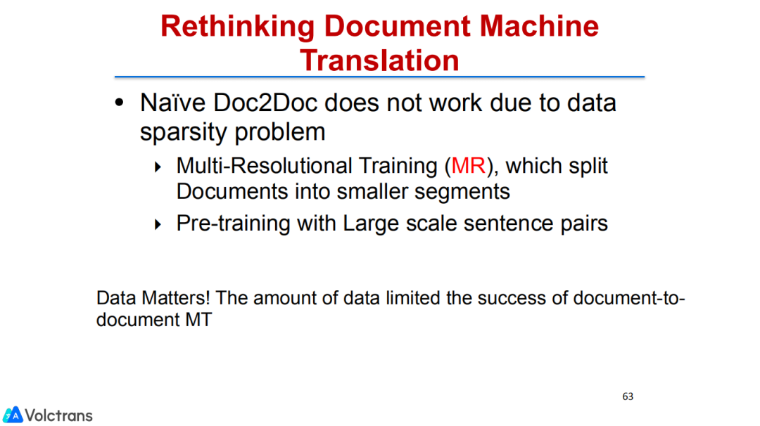 我们也用类似的思路做了document machine translation,引入了非常多的文档数据。
