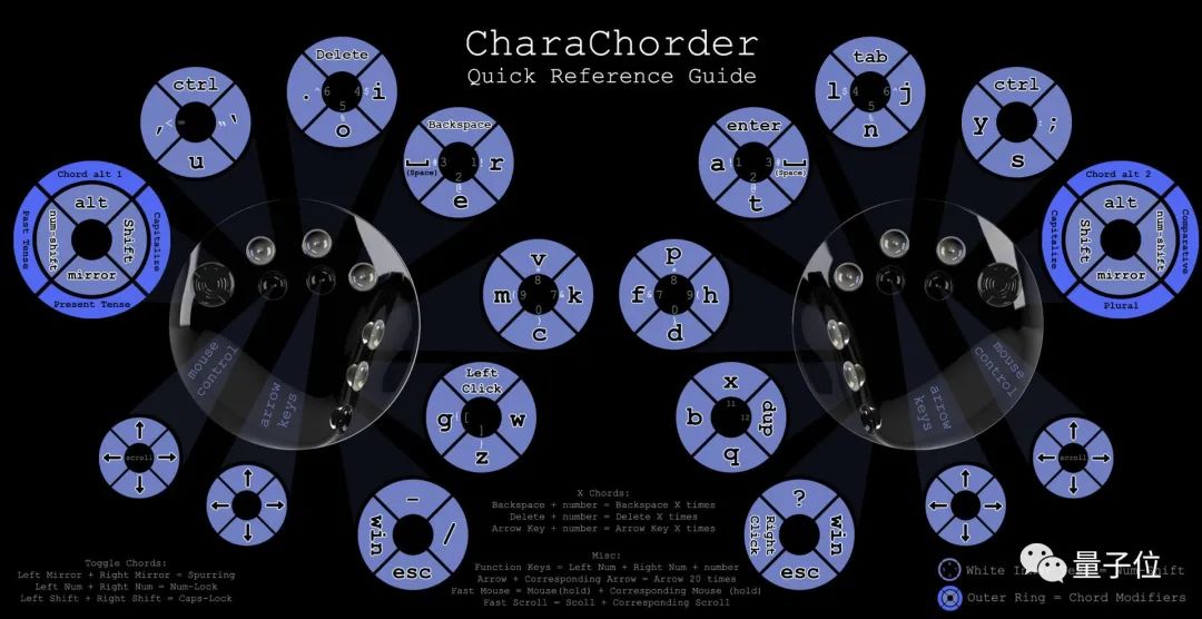 这些摇杆按动方式可以进行组合,输出300多种不同的字符,覆盖传统键盘上的所有按键。