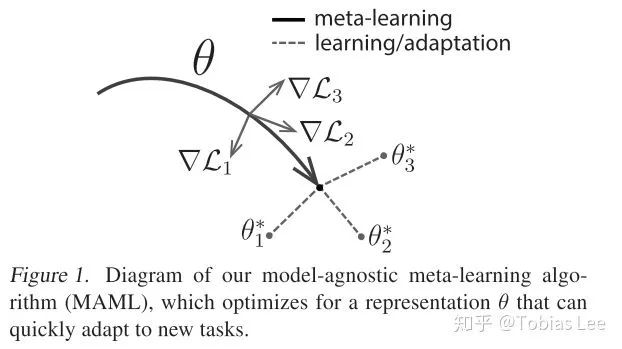 下面这一张图很直观地说明了 MAML 在做的事情: