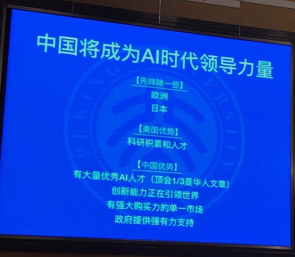 谈到中国在AI时代的优势,雷鸣总结了四点:1. 有大量优秀的AI人才;2. 创新能力正在引领世界;3. 有强大购买力?,市场是单一市场;4. 政府会提供强有力的支持。
