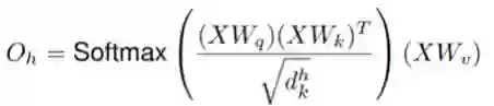 给定一个形状为 (H, W, F_in) 的输入张量,我们将其展开为一个矩阵,并如 Transformer 架构提出的那样执行多头注意。则单个头 h 的自注意机制输出为