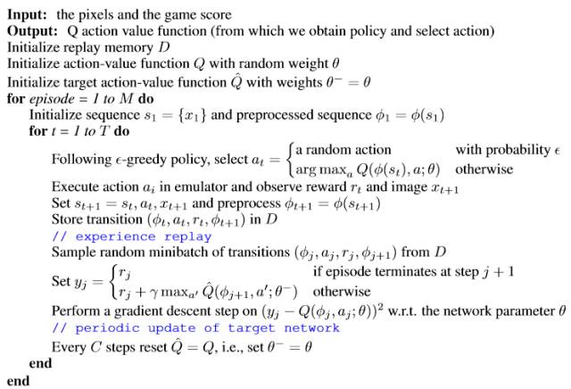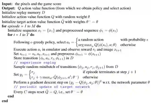 算法 1:深度 Q 网络,截取自 Mnih et al. (2015)