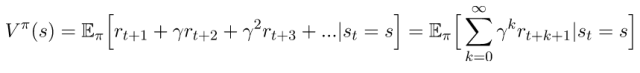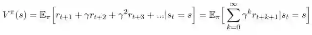 状态价值函数在遵循一个策略时描述状态的值。根据策略π,状态价值函数的期望回报是: