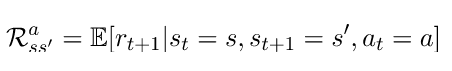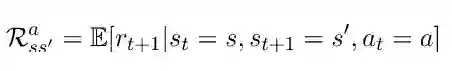 是我们在状态 s 处开始,实施动作 a,进入状态 s'得到的期望(或平均)奖励(reward)的另一种符号。