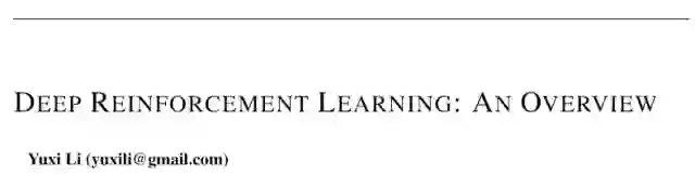 本论文将概述最近在深度强化学习(Deep Reinforcement Learning)方面喜人的进展。本文将从深度学习及强化学习的背景知识开始,包括了对实验平台的介绍。接着我们会介绍深度 Q 网络(Deep Q-Network,DQN)及其拓展、异步方法(asynchronous methods)、策略优化(policy optimization)、奖励(reward)及规划(planning)。在这之后,我会讨论注意和记忆(attention and memory)机制、非监督学习及学习去学习。随后,会讨论强化学习的各种应用,包括在游戏(特别是 AlphaGo)、机器人、口语对话系统(聊天机器人)、机器翻译、文本序列预测、神经架构设计、个性化网络服务、医疗、金融及音乐生成等方面的应用。我们会提到一些未覆盖到的主题/论文。在列举强化学习相关资源之后,我们将会以讨论结束论文。