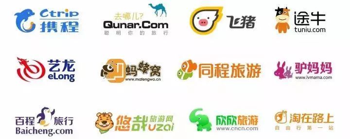 有些特定门类或行业的互联网公司,动物形象的比例高得离谱,完全可以组成行业内的动物园。譬如排名前十的旅游网站中,就有 8 个商标或名字包含动物,在前十之后,你还会看到一大堆动物,几乎可以说是「无动物不旅游」。