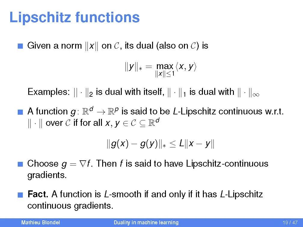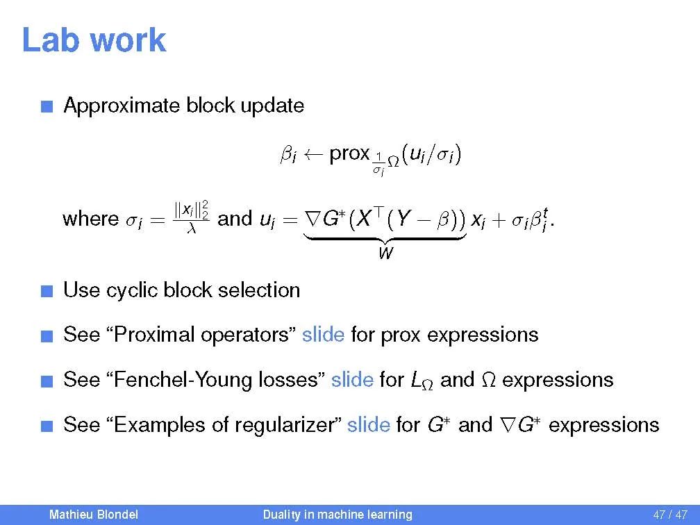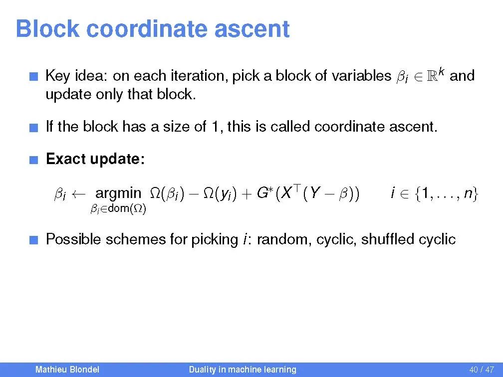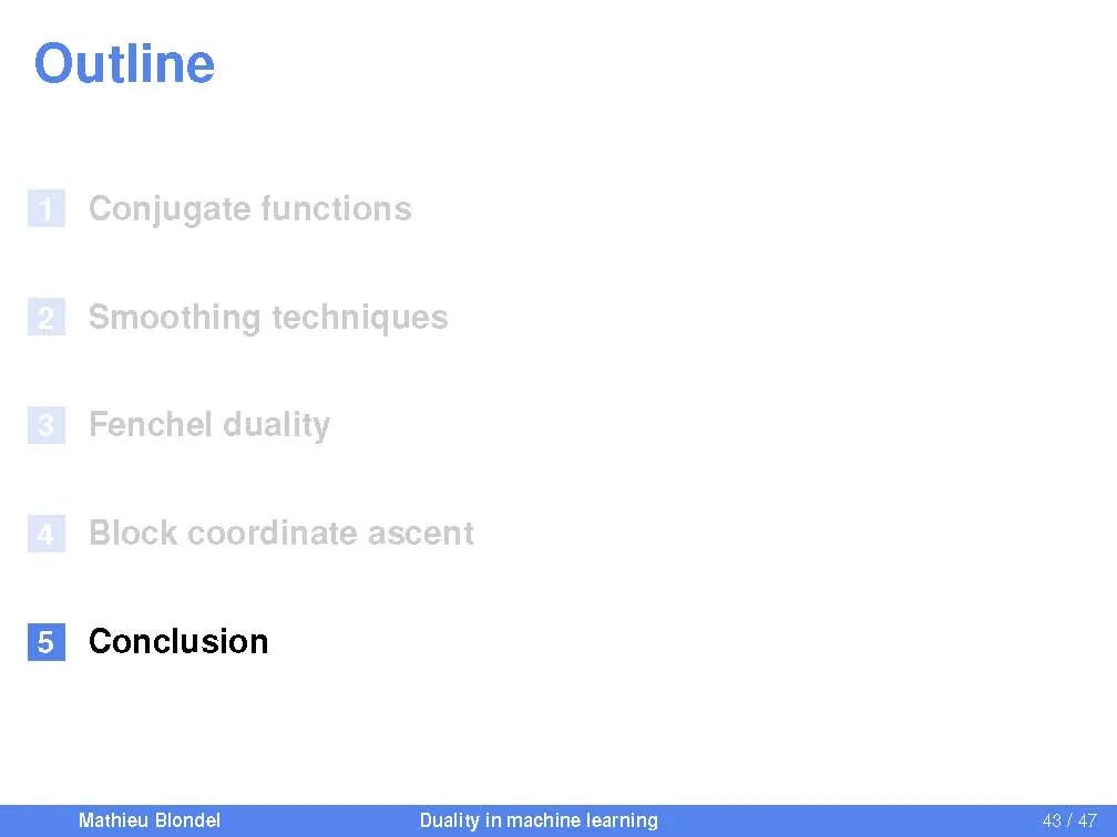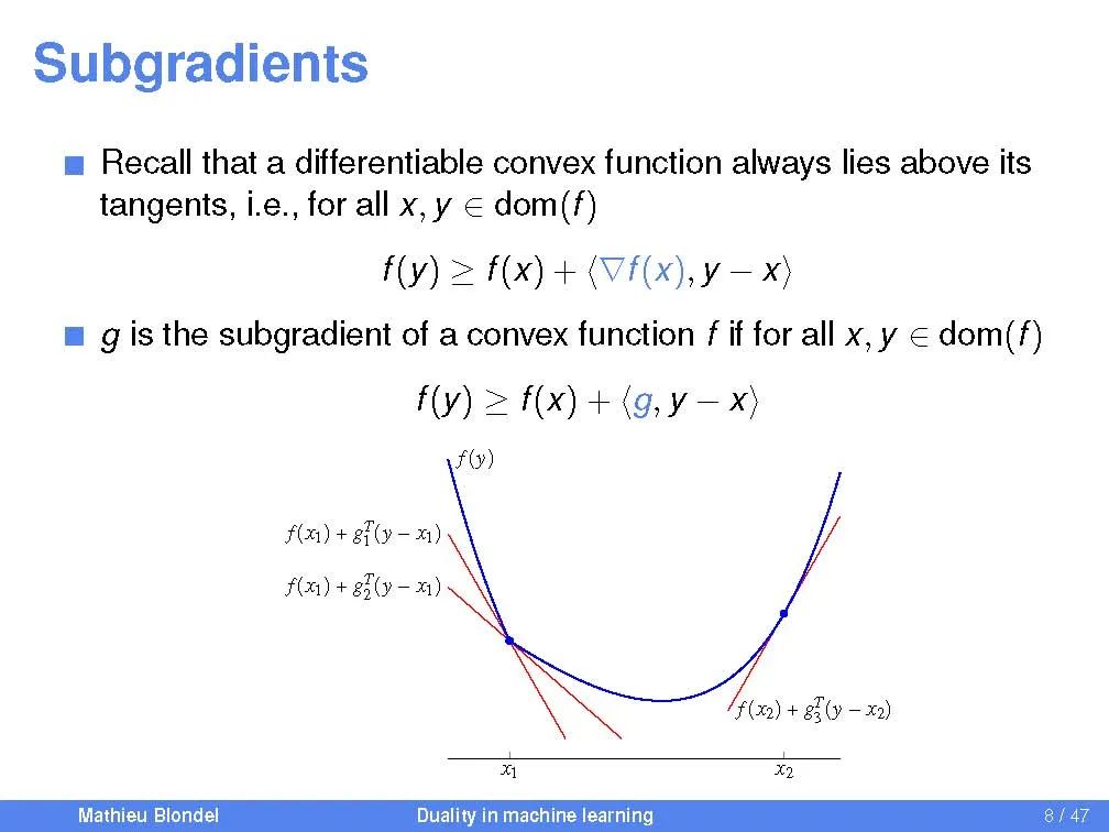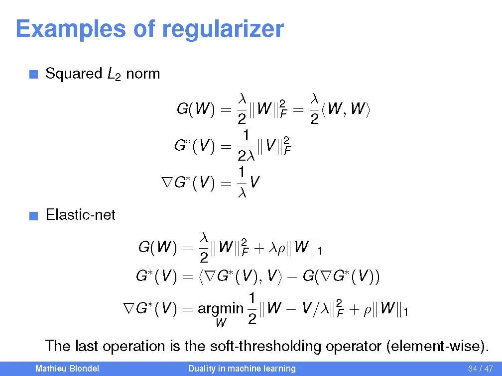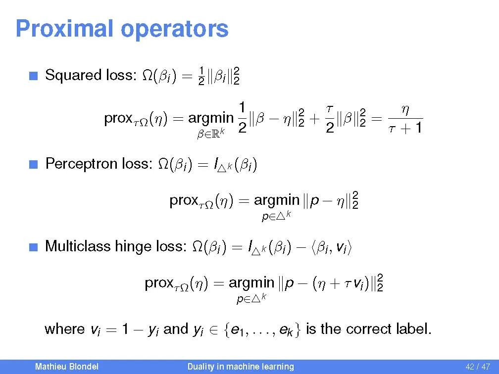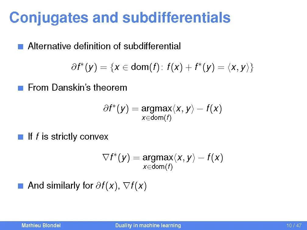 Google 研究科学家Mathieu Blondel在PSL大学的“机器学习的对偶性”课程材料。主题包括共轭函数,平滑技术,Fenchel对偶性,Fenchel-Young损失和块对偶坐标上升算法。