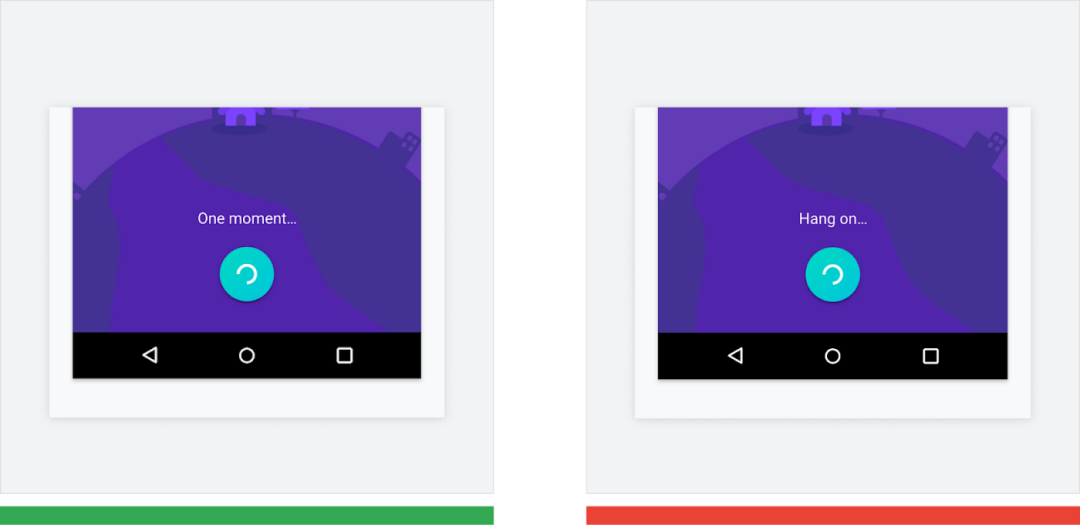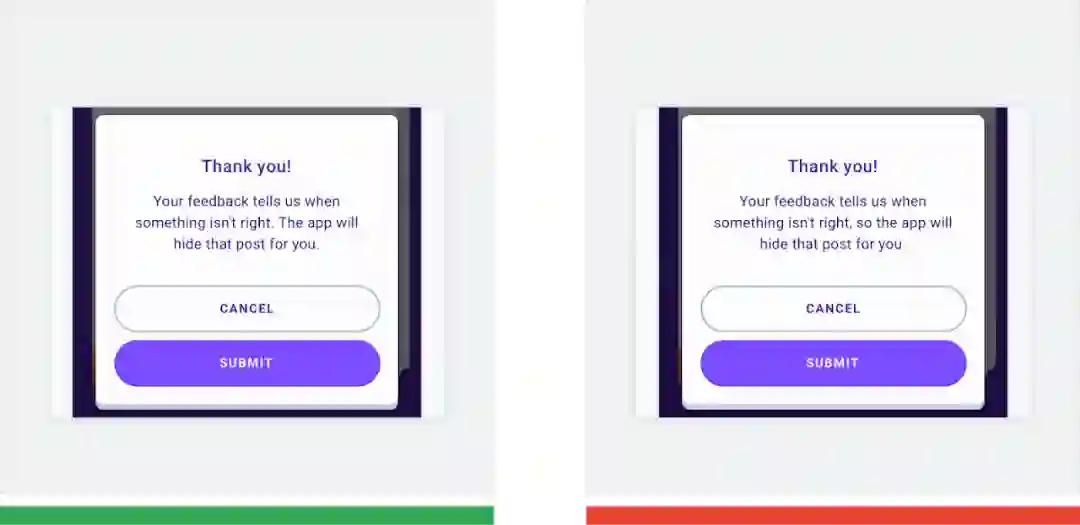 △ 正确做法 (绿色): 界面文案中有 2 个句子,一个句子表述一个想法。