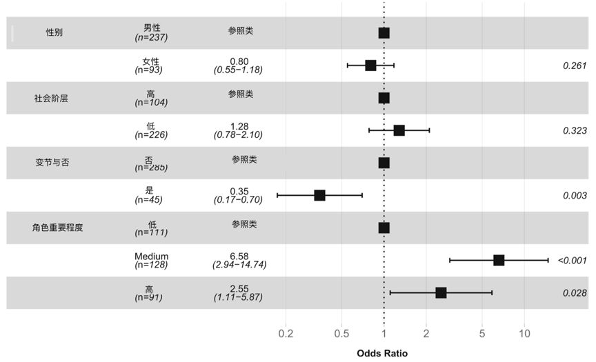 具体来看,相对于不重要的角色(即低重要程度的角色为参照类)中等重要程度的角色死亡风险要高6.58倍。重要角色,死亡风险是不重要角色的2.55倍。这也就是说,在《权力的游戏》剧中,中等重要的角色是最为悲情的,因为他们承受着最高的死亡风险。