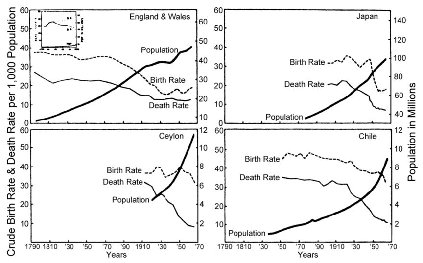 事实上,Reidar 和 Benjamin 的研究也证明,《权力的游戏》中人物的高死亡率和故事主线,与历史发展的基本规律是相吻合的。研究表明,从前工业时代到现代社会,人类社会的死亡率整体上呈现出下降的趋势,从英国、日本、锡兰和智利的死亡率数据中,我们可以发现这种规律的事实依据。