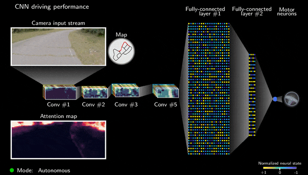 此外,可解释性细化到了每个神经元。我们还能看到哪个神经元(视频中亮起部分)在驾驶决策中的作用。我们可以了解单个神经元的功能及其行为。