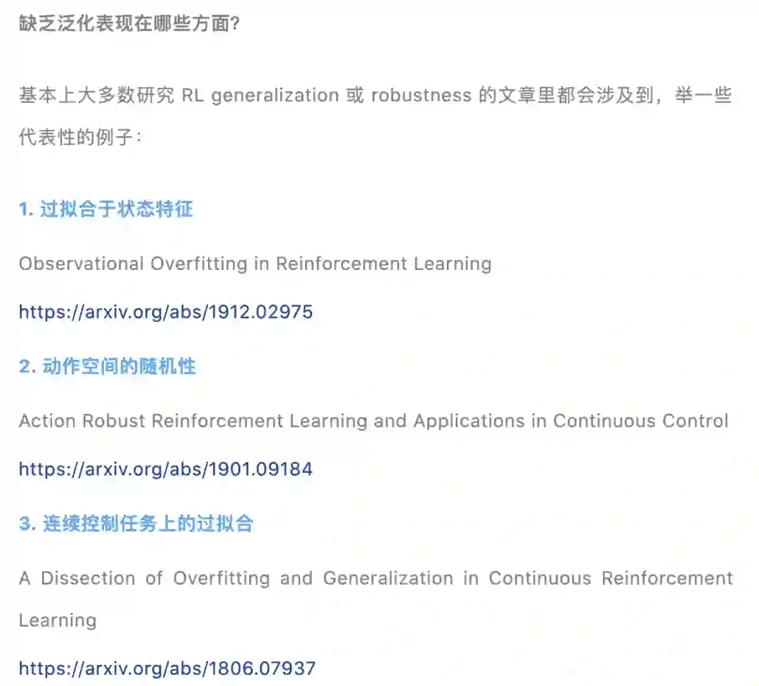 目前学术界对 RL 泛化问题的研究实际上很难完全分类,因为目前鲜有能构成体系的研究工作,提出的各种解决方案颇有东一榔头西一棒槌之感,下面列两篇无法分类到以上任何类别的工作: