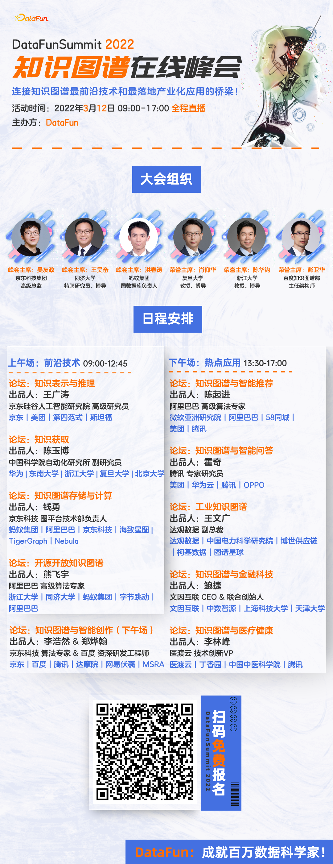 ,DataFun将举办第二届DataFunSummit:知识图谱在线峰会。