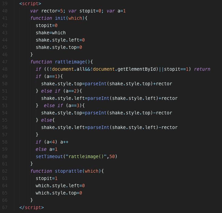 以上面的图片震动功能来说,就只是用 JavaScript 写了以下代码: