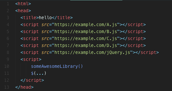 于是除了 jQuery 以外,小明开始用了其他的 Library 来解决问题,直接把别人写好的功能拿来用。可是用著用著,小明发现了一个问题,那就是引入 library 的机制。