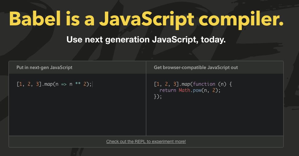 这个工具就叫做 babel,它的官方网站简单明瞭的说出了它的作用: