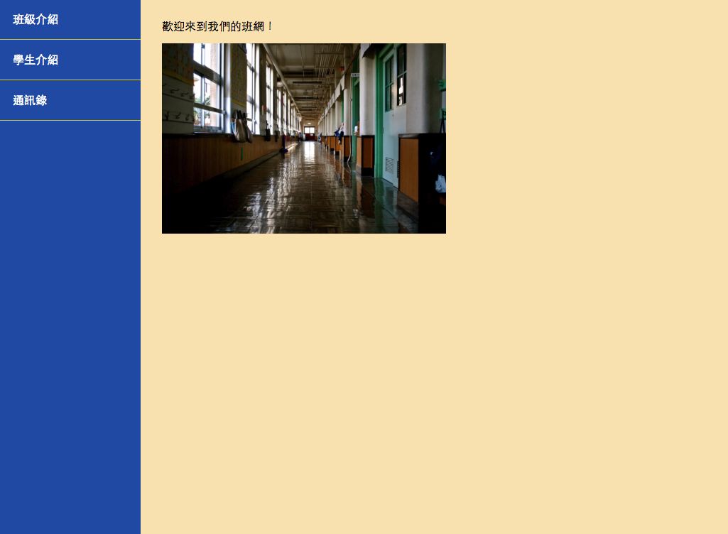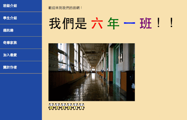 经过一番摸索之后,小明完成了班级网页的雏形: