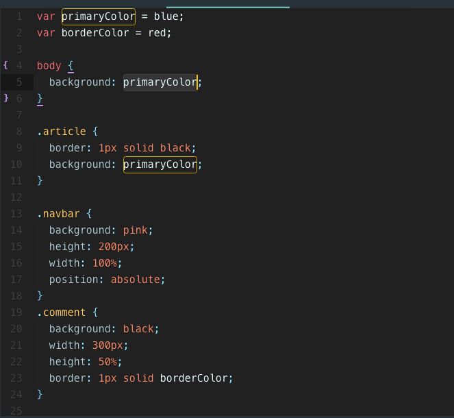 有没有可能把程序的概念引入到 CSS里面去呢?例如说变量?这样我们就能够用变量来取代写死的颜色,要改的话也很方便,只要改一个地方就好: