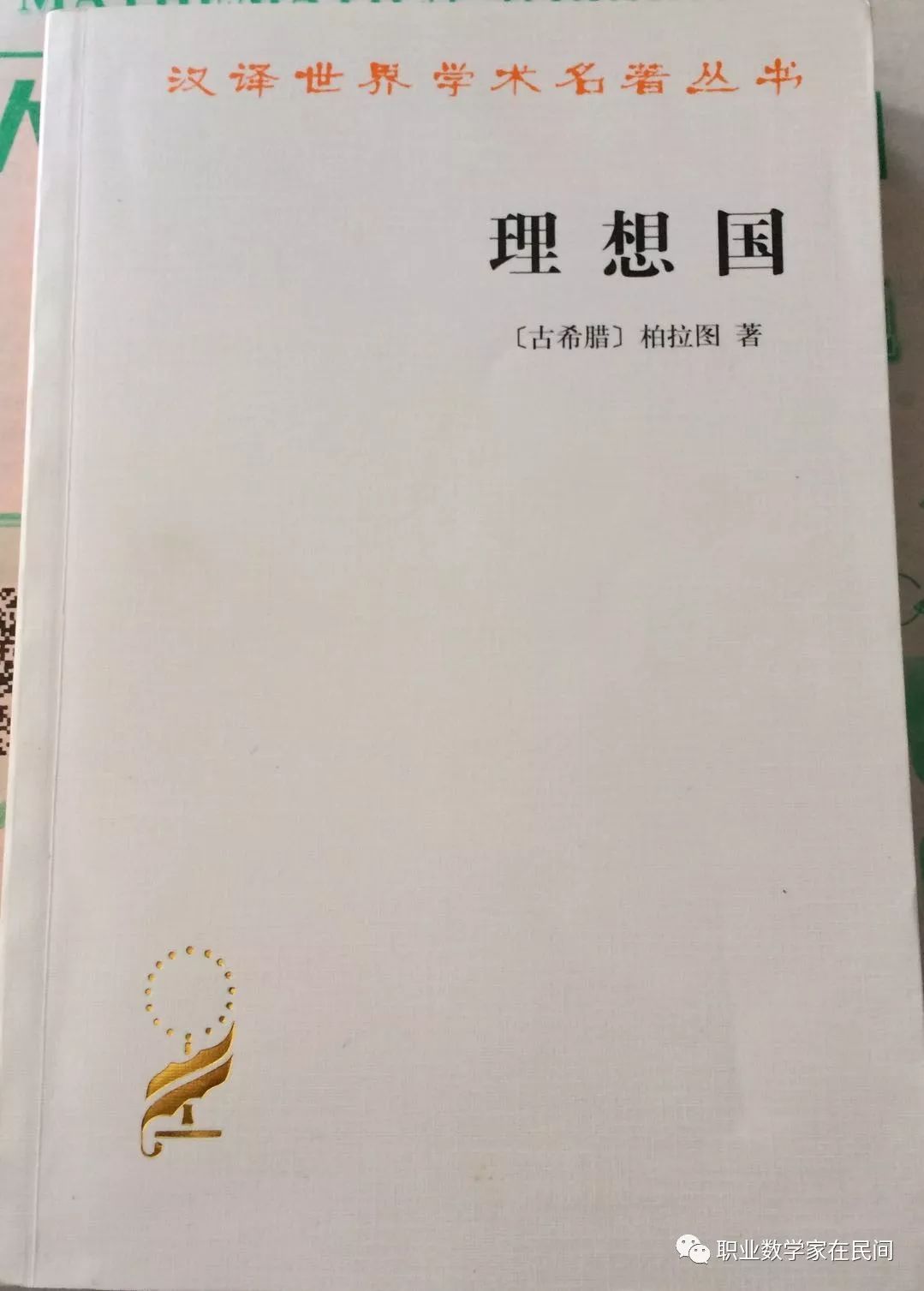 很多人可能会认为柏拉图的《理想国》并不是一本数学书而是哲学书。如果只让我给中小学生推荐一本哲学书的话,我肯定会推荐《理想国》。我认为哲学和数学,“行深般若波罗蜜多时”,理应贯通。但这远远不是我推荐这本书的全部理由。人们常常问这样一个问题:为什么现代数学发源于西方而不是东方?我认为部分答案可以在《理想国》中找到,尤其是里面论述理念的章节。从某种意义上来说,数学就是理念的学科,而2000多年来西方数学(还有哲学)的发展就是在为《理想国》中的理念做诠释。