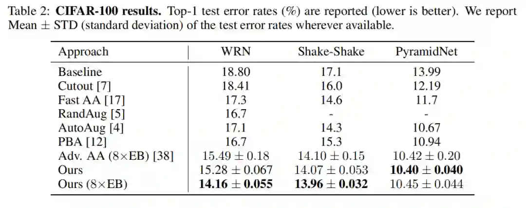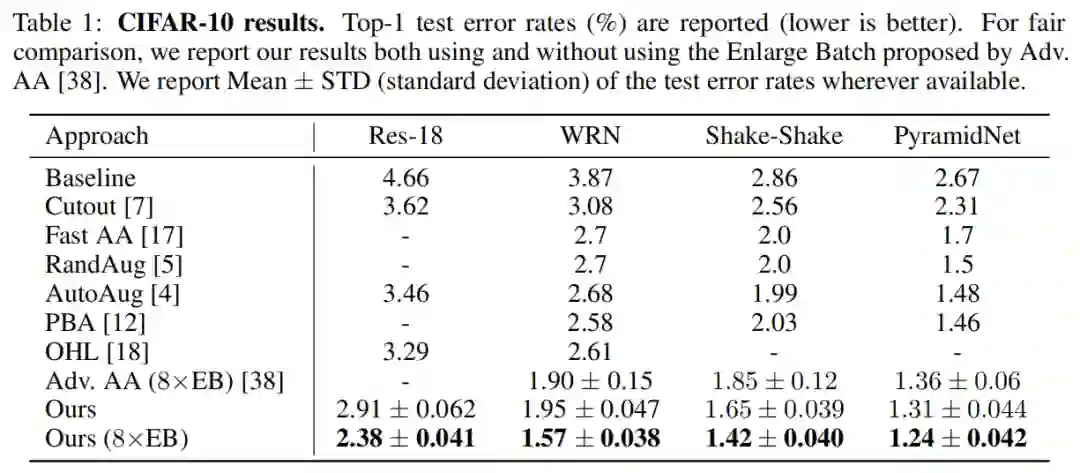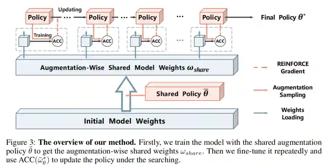 近两年自动搜索得到的图像数据增广策略大大提高了各种视觉任务的性能。自动搜索的关键组成部分是对特定增强策略的评估过程,该过程用于返回奖励并进一步得到更好的策略。评估过程将非常耗时。为了获得效率,很多研究者选择牺牲评估可靠性来提高速度。而在本文中将深入研究模型的增强训练的动力学。启发设计了基于增强权重共享的机制,以一种优雅的方式形成快速而准确的评估过程。本文方法在CIFAR-10上,Top-1错误率为1.24%,这是目前性能最佳的单一模型!性能优于Adv AA、PBA、AutoAug等数据增广方法。