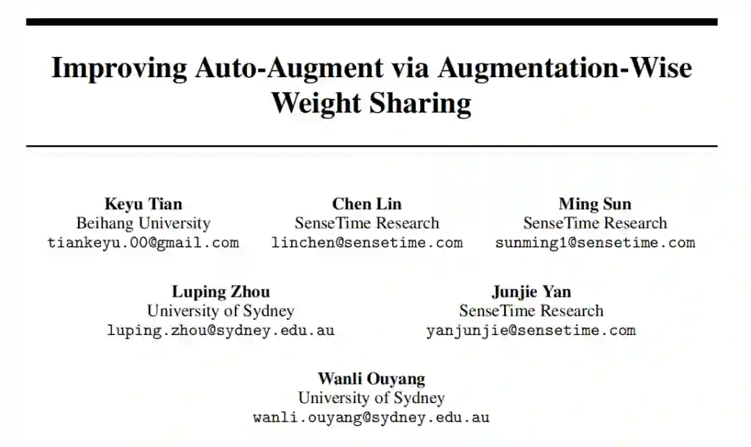 [1] Improving Auto-Augment via Augmentation-WiseWeight Sharing